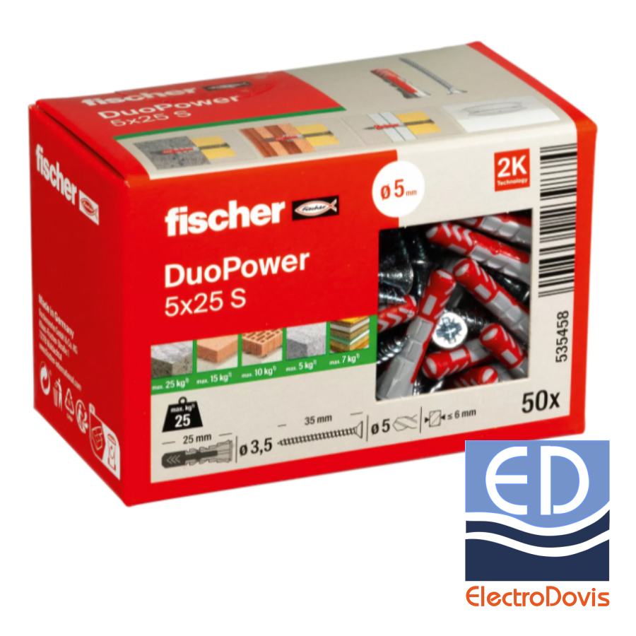 DIBLU CU SURUB Fischer 5x25 DuoPower infiletare 535458