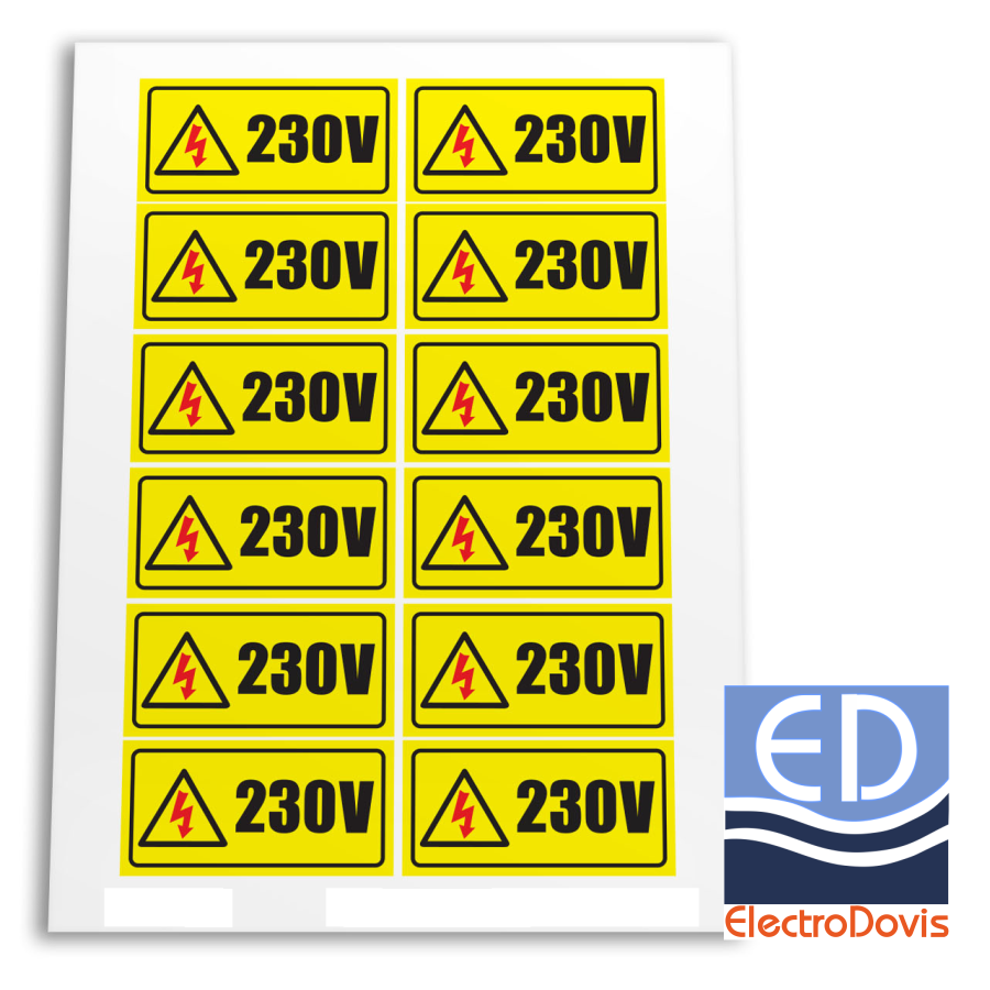 Indicatoare din autocolant 230V (folie adeziva din pvc, calandrata, grosime 80 microni)