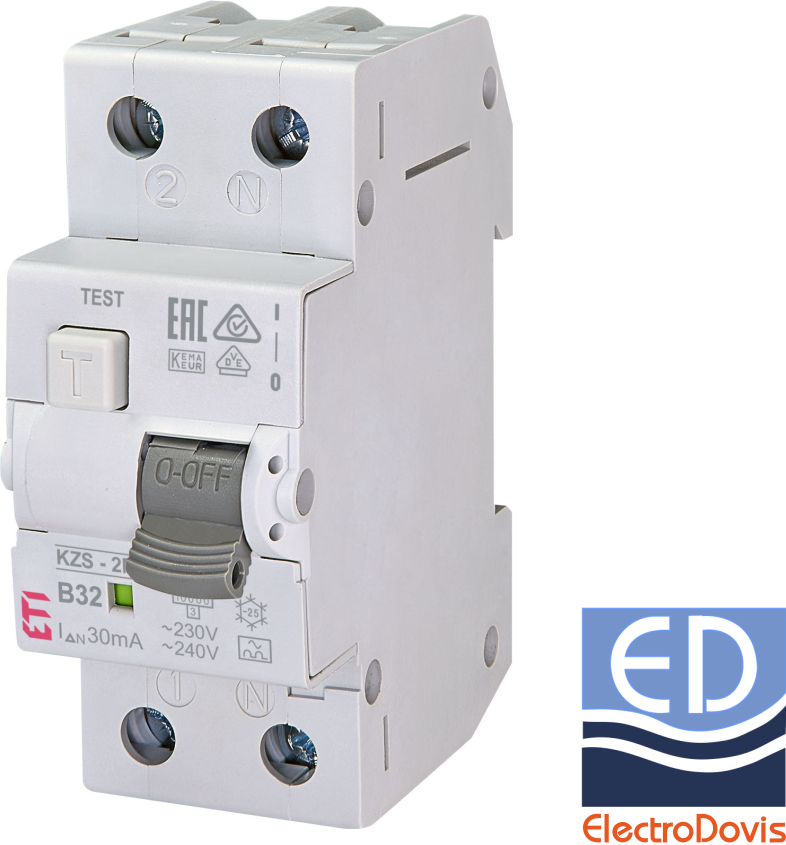 INTR.DIF.1P+N 32A/ 30mA RCBO tip A curba B 10kA KZS-2M ETI - 002173207