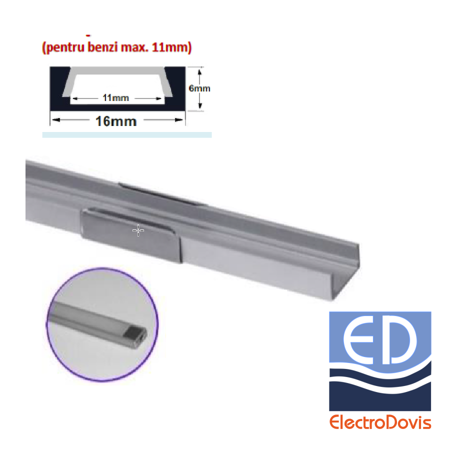 PROFIL ALUMINIU aparent pt. banda led max.11mm 2m 30-05502