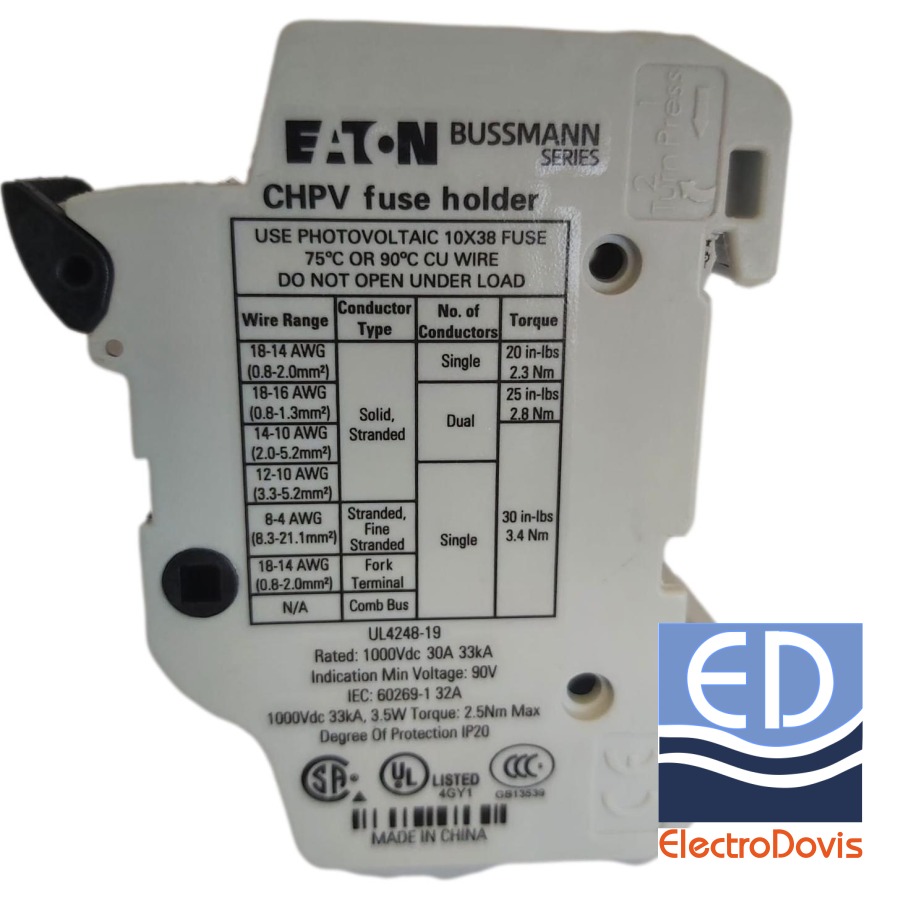 SEPARATOR FUZIBILI 10x38 1p galben 1000V DC max 30A CHPV1U Eaton