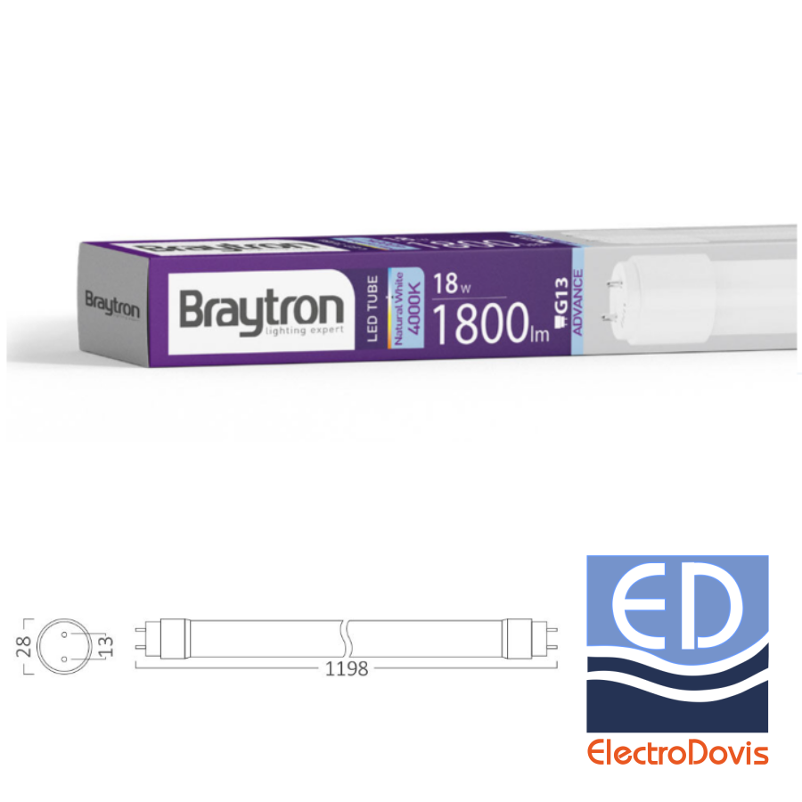TUB LED T8 18W 1200mm 4000K 1800lm SPV alim. 2 capete